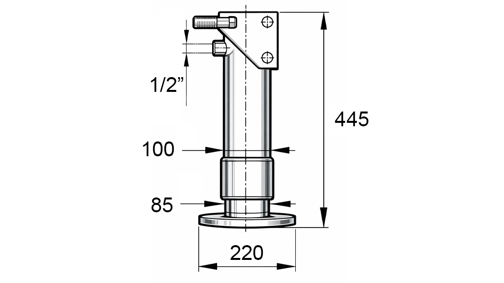 VÝKYVNÁ DVOJČINNÁ HYDRAULICKÁ OPĚRNÁ NOHA (Φ100x445 mm) - ZDVIH 250 mm - 6.000 kg