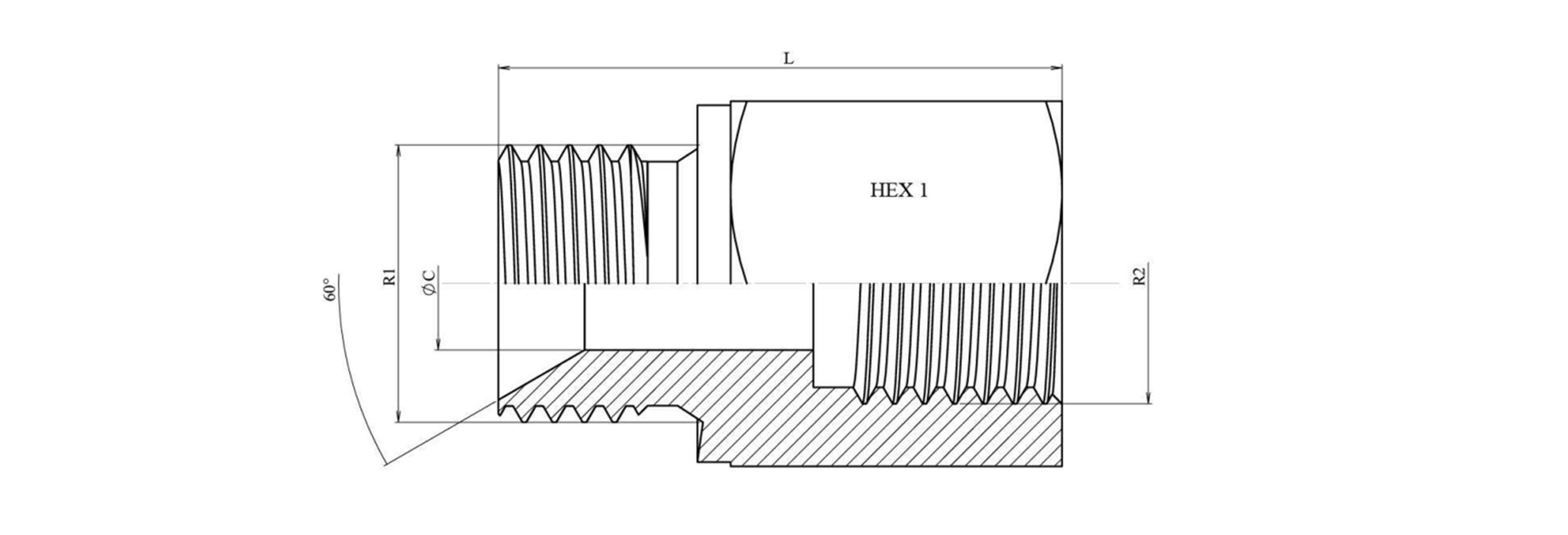 HYDRAULICKÝ ADAPTÉR VNĚJŠÍ ZÁVIT-VNITŘNÍ ZÁVIT M18X1,5 - M22X1,5
