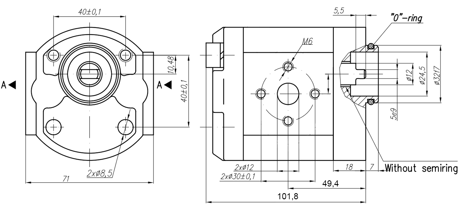 POMPE HYDRAULIQUE 10A6.1X179 GR.1 - 6,1cc - GAUCHE