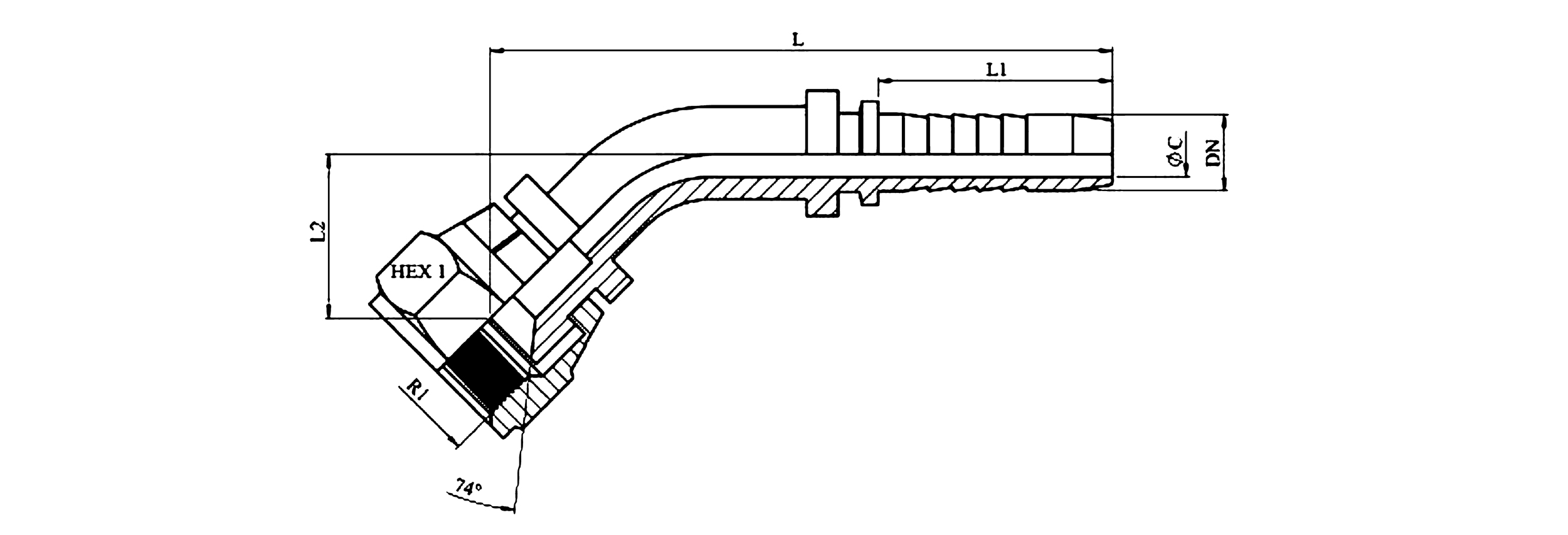 RACCORD HYDRAULIQUE BSP FEMELLE COUDE 45° DN19-3/4