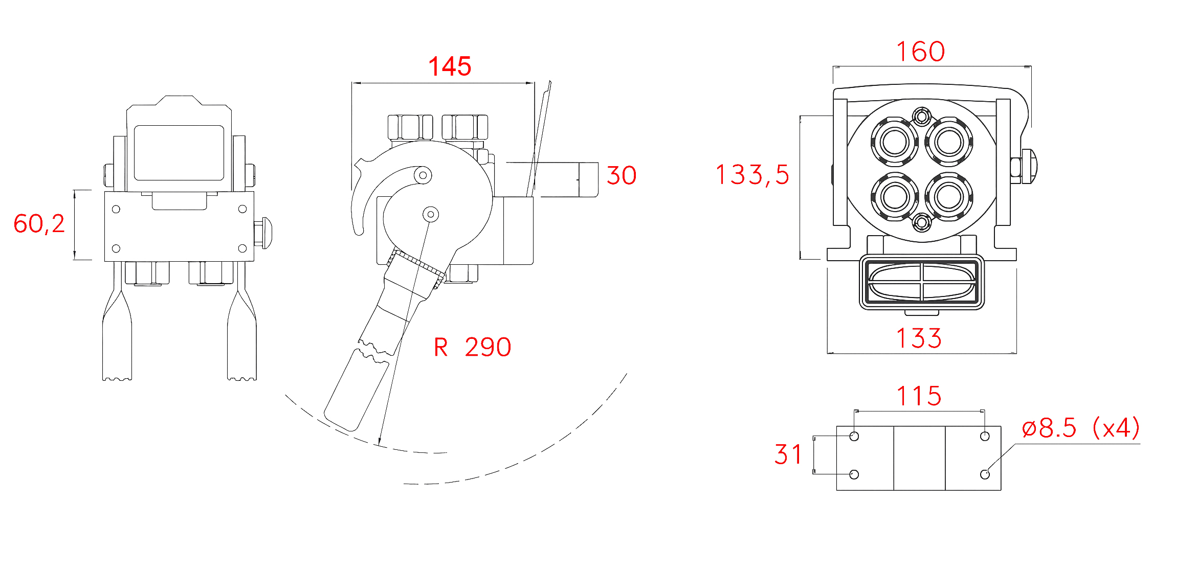 - Kmetijska, gradbena in gozdarska mehanizacija: pri priklopih delovnih priključkov (npr. plugi, hidravlične roke, klešče …), ki potrebujejo več hidravličnih vodov.