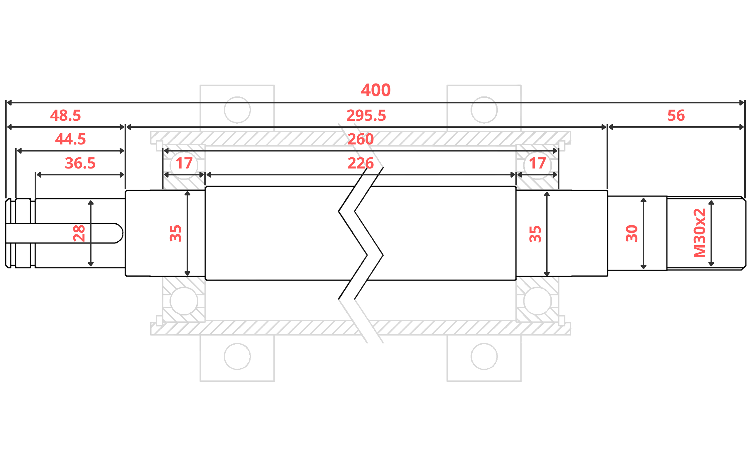 Kompaktna in robustna osovina za krožne žage, pripravljena za hitro vgradnjo. Iz debelostenske litoželezne cevi in 2x6207 jeklenih ležajih, zato zagotavlja miren tek, dolgo življenjsko dobo in zanesljivo vpenjanje žaginega lista. Desni navoj M30×2 omogoča varno in ponovljivo zategovanje.