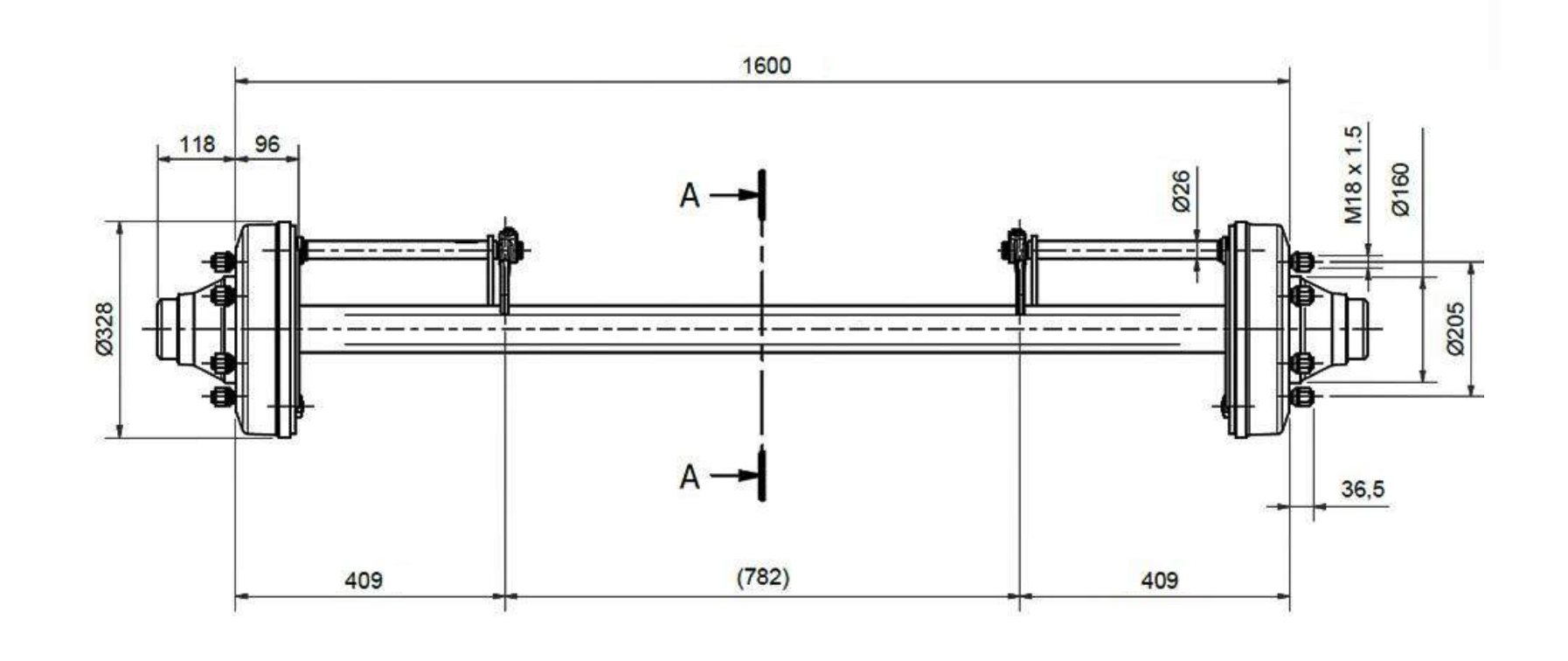OSOVINA ZA PRIKOLICO Z ZAVORAMI (6 VIJAKOV) - 7200 kg - 1600 mm
