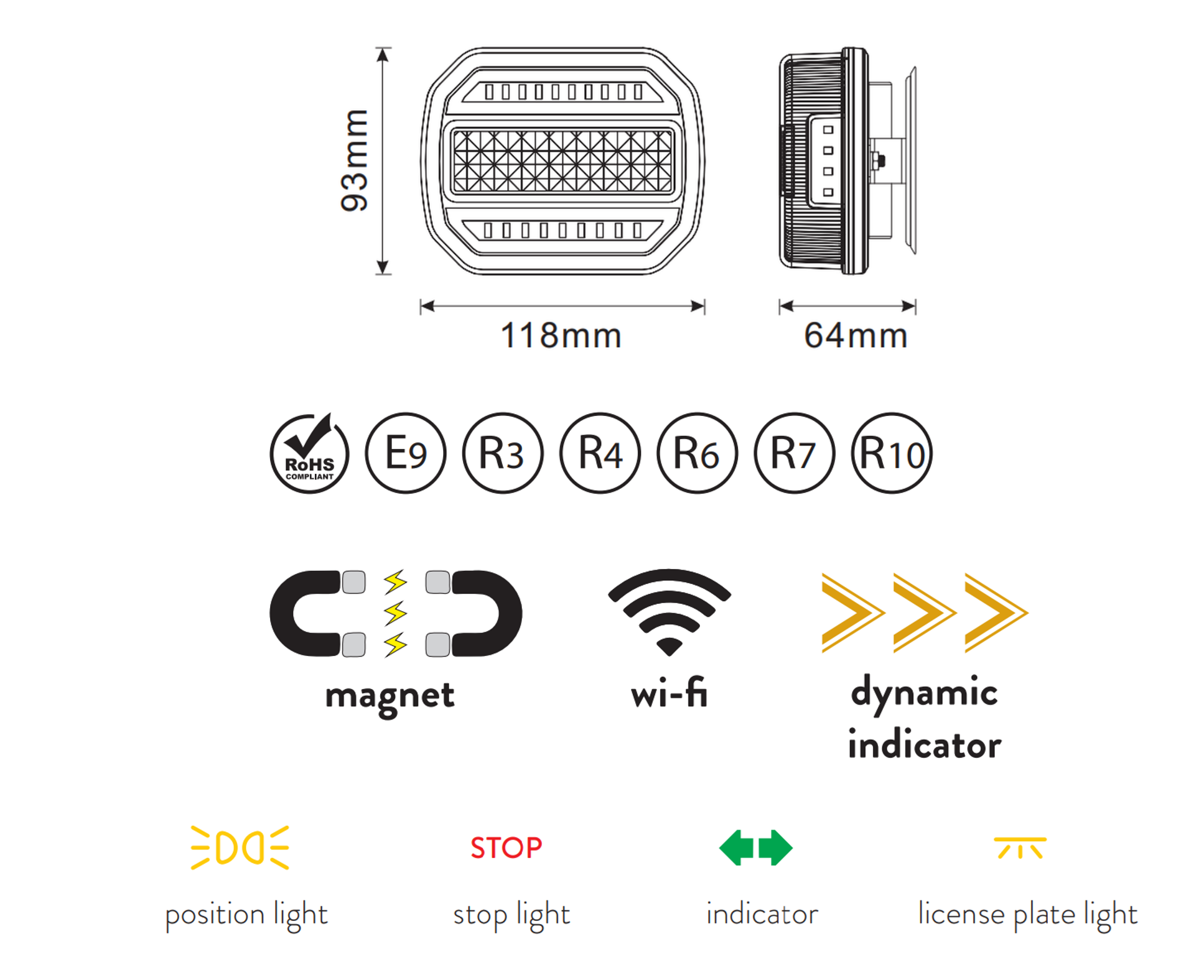 Praktická sada bezdrátových magnetických LED světel pro rychlé a bezpečné označení přívěsů. Sada je ideálním řešením pro jednoduchou a spolehlivou světelnou signalizaci bez kabelů a složité elektroinstalace. Světla stačí umístit na kovový povrch a magnet je bezpečně udrží na místě.